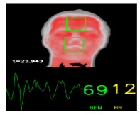 Abstract: To solve the problems of inconvenient carrying and contact with the human body when using current clinical vital signs monitoring equipment, a method of estimating heart rate and respiratory information is proposed by analyzing the facial vascular model and temperature difference of the nostril position using an infrared thermal imager as a transmission device. First, the foreground target is extracted from the obtained thermal image sequence to shorten the time of face detection in the entire image. Anisotropic diffusion is then used to enhance the contrast of the vascular position in the region of interest, and the gray mean of the vascular position in the face is obtained by morphological processing to form the initial heart rate signal. Finally, trend elimination, wavelet threshold denoising, and other filtering methods were used to remove the trend item and random noise in the time series to obtain the final heart rate waveform, dynamic heart, and respiration values. Compared with specialized equipment in the hospital, it was found that the method exhibited a heart rate error of less than 4%, and the average error of the average value was 0.718 beats/min. The breathing error is within 1 beat/min, showing high accuracy and robustness and that the method can meet actual needs.