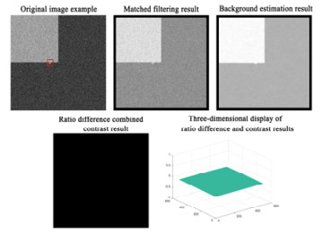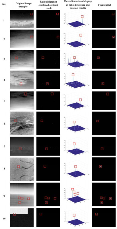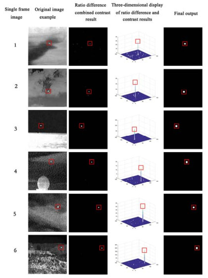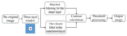 A method for infrared (IR) small dim target detection based on a local contrast mechanism is proposed to solve the problem of IR small dim target detection under a complex background and low signal-to-clutter ratio (SCR). A three-layer window consisting of an inner layer, a middle layer, and an outer layer is proposed, so that targets of different scales can be detected using only single-scale calculations. First, the matched filter is applied to the inner layer to enhance the true target purposefully, and the max-close principle is proposed to estimate the background of the outer layer, so that detection becomes easier when the target is near the background edge. Then, the ratio-difference joint local contrast measure is calculated between the enhanced target and the estimated background to enhance the true target and suppress the complex background simultaneously. Finally, an adaptive threshold operation is used to extract the true target. Experimental results show that compared to some existing algorithms, the proposed algorithm can enhance the true target and suppress complex background better, and its principle is simple yet suitable for implementation and can effectively reduce the amount of calculation.