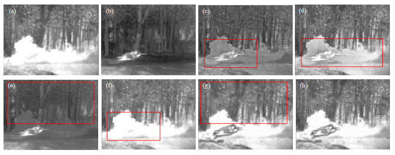 • 摘要: 针对传统红外与可见光图像融合算法中存在的目标模糊、细节丢失、算法不稳定等问题,提出了一种基于模糊C均值聚类(Fuzzy C-means, FCM)与引导滤波的红外与可见光图像融合方法。原图像经过非下采样剪切波变换(Nonsubsampled Shearlet Transform, NSST)后对低频子带进行引导滤波增强,再利用FCM与双通道脉冲发放皮层模型(Dual Channel Spiking Cortical Model, DCSCM)结合对高低频子带进行融合,最后经NSST逆变换得到融合图像。实验结果表明,本文算法稳定,主观评价上所得融合图像目标明确,细节保留较为完整,客观评价上在标准差、互信息、平均梯度、信息熵和边缘保留因子等评价标准中表现优良。