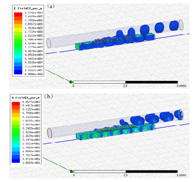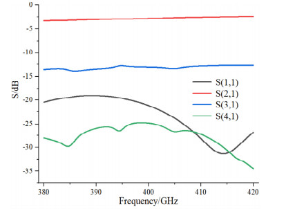 Abstract: According to the application prospects of micro drone radar, precision guided weapon radar, and wireless communication terminal equipment, an asymmetric primary and secondary waveguide directional coupler is designed. The coupler uses an equally spaced porous coupling structure with different shapes of main and secondary waveguides, and the signal of the TE10 mode of the rectangular waveguide is coupled to the TE11 mode of the secondary circular waveguide. The isolated port achieves the effect of reverse cancelation, and good coupling and isolation can be obtained using the principle of phase superposition. The center frequency of the directional coupler and the relative bandwidth are 400 and 40 GHz, respectively. The results show that the coupling degree of the directional coupler is approximately -13.8 to -12.8 dB, which achieves a weak coupling effect and has a good coupling stability. The isolation is better than -24.5 dB, the through insertion loss is approximately -3 to -2.5 dB, and the performance is good.