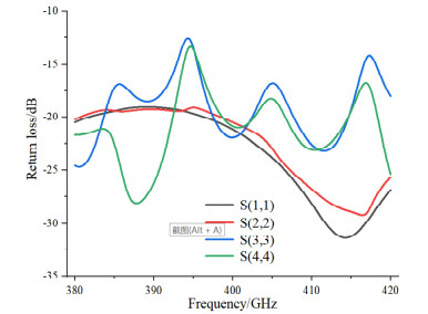 • 摘要: 基于微型无人机雷达、精确制导武器雷达及无线通信终端设备的应用前景,设计了一种非对称主副波导定向耦合器。该耦合器采用主副波导为不同形状的等间距多孔耦合结构,将主矩形波导TE10模的信号耦合到副圆形波导TE11模中,利用相位叠加原理使得隔离端口相位达到反向相消的效果,能够得到良好的耦合度和隔离度。该耦合器中心频率为400 GHz,相对带宽为40 GHz,结果表明,定向耦合器耦合度达到-13.8~-12.8 dB,实现了弱耦合效果且耦合度稳定性较好,隔离度优于-24.5 dB,直通插入损耗为-3~-2.5 dB,性能良好。