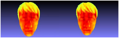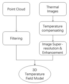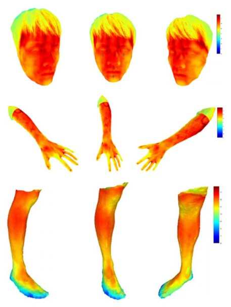Reconstruction of 3D temperature fields on the human body surface can provide reliable data for a number of human medical analyses, including diagnoses. Based on the limitations of infrared imaging, such as poor temperature measurement accuracy, insufficient imaging resolution, and poor display effects, the reliability of the 3D temperature field collected using infrared imaging is low. To overcome these problems, we propose a fusion reconstruction method for 3D temperature fields on the human body surface. First, the blackbody temperature measurement and calibration method is used to correct the errors in the temperature measurement results of an infrared thermal imager. Second, contrast enhancement processing is applied. Third, super-resolution processing is used to make the infrared images match the 3D data in terms of spatial resolution. Finally, in the data fusion stage, based on the fact that the target feature points extracted from different images correspond to the same position in the space, the system structure parameters obtained through calibration are corrected. Experimental results demonstrate that the temperature error of the 3D temperature field is less than 0.26℃, the 3D distribution of the temperature field is improved, and the display effect is enhanced.