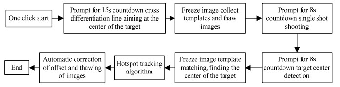 Due to the night-vision display function of infrared images and their ability to observe targets over long distances, they are often used in sniper sights for firearms. However, when an infrared sight is first installed on a firearm, it is necessary to calibrate the zero position such that the cross-division center of the infrared sight coincides with the target center of the firearm during sniping. A target can only be accurately hit during sniping if the infrared sight has undergone zero calibration. Performing automatic and efficient zero calibration is a problem in that every infrared sight differs when it is first used. This article investigates the current mainstream zero calibration methods, analyzes and compares them, and proposes an efficient automatic calibration method and process based on single-key triggering, which simplifies the calibration process and improves its efficiency. In engineering applications, it solves the problem of difficult and slow calibration of infrared sights during initial use and greatly improves the user experience.
