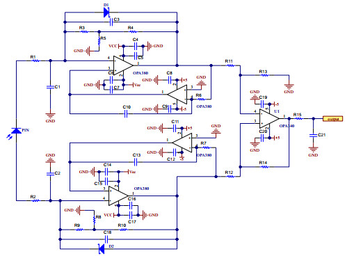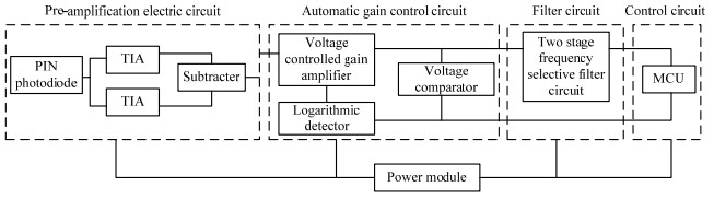 In laser simulation combat systems, the traditional photoelectric detection circuit is significantly affected by the environment, the system is unstable, and the detection efficiency is low. To solve this problem, a gain-adaptive photoelectric detection circuit based on a single-chip microcomputer was designed according to the principle of photoelectric signal detection. Based on a traditional photoelectric detection circuit, two symmetrically distributed transimpedance amplification feedback circuits were used to eliminate the bias of the photodetector and suppress the system noise of the preamplifier circuit. An automatic gain-control circuit was used to stabilize the output signal amplitude at different shooting distances. The multistage filtering method was used to remove the DC component of the signal and effectively suppress the background noise, providing preparation for further signal processing. Experimental verification and TINA-TI simulation analysis show that the photoelectric detection circuit achieves an adaptive gain change, and the output voltage amplitude is stable at approximately 2 V at different incident distances. Its performance is clearly better than that of a traditional fixed-gain circuit, significantly improving the detection ability of the photoelectric signal. The results verified the scientific nature and feasibility of the proposed photoelectric detection circuit design.