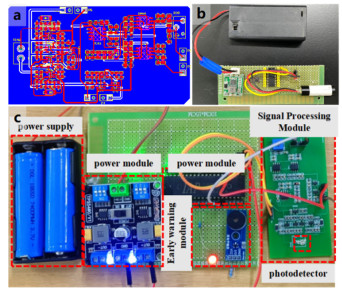 Abstract: In laser simulation combat systems, the traditional photoelectric detection circuit is significantly affected by the environment, the system is unstable, and the detection efficiency is low. To solve this problem, a gain-adaptive photoelectric detection circuit based on a single-chip microcomputer was designed according to the principle of photoelectric signal detection. Based on a traditional photoelectric detection circuit, two symmetrically distributed transimpedance amplification feedback circuits were used to eliminate the bias of the photodetector and suppress the system noise of the preamplifier circuit. An automatic gain-control circuit was used to stabilize the output signal amplitude at different shooting distances. The multistage filtering method was used to remove the DC component of the signal and effectively suppress the background noise, providing preparation for further signal processing. Experimental verification and TINA-TI simulation analysis show that the photoelectric detection circuit achieves an adaptive gain change, and the output voltage amplitude is stable at approximately 2 V at different incident distances. Its performance is clearly better than that of a traditional fixed-gain circuit, significantly improving the detection ability of the photoelectric signal. The results verified the scientific nature and feasibility of the proposed photoelectric detection circuit design.