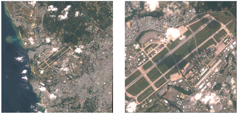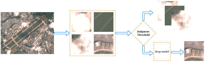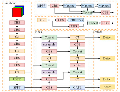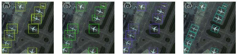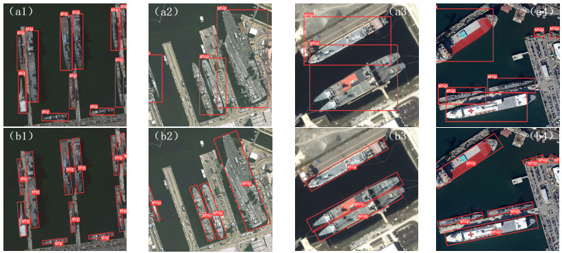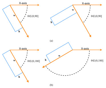 In a real remote sensing image, the target is distributed in any direction and it is difficult for the original YOLOv5 network to accurately express the location and range of the target and the detection speed is moderate. To solve these problems, a remote sensing image rotating target detection model, YOLOv5-Left-Rotation, was proposed. First, the transformer self-attention mechanism was used to make the model pay more attention to the targets of interest. In addition, Mosaic data were enhanced in the image preprocessing, and the improved Non-Maximum Suppression algorithm was used in post-processing. Second, an angle loss function was introduced to increase the output dimensions of the network, and the prediction box of the rotating rectangle was obtained. Finally, in the shallow stage of the network model, a sliding window branch was added to improve the detection efficiency of large-sized remote sensing sparse targets. The experimental datasets were the self-made aircraft dataset CASIA-plane78 and the public ship dataset HRSC2016. The results show that the average accuracy of the improved rotating target detection algorithm is improved by 3.175% compared with that of the original model, and the reasoning speed is improved by 13.6% in a large multispectral image swept by a Jilin-1 satellite. It can optimally reduce the redundant background information and more accurately detect the densely arranged and irregularly distributed areas of objects of interest in optical remote sensing images.