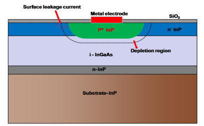 To meet with the ongoing demand for high uniformity, low dark current and low-blind pixels of linear InGaAs short-wavelength-infrared focal plane detector in color separation industry, based on MOCVD-grown n-i-n type InP/InGaAs/InP epitaxial materials, a 512×2-element linear InGaAs short-wavelength-infrared focal plane detector was fabricated using diffusion techniques, preparation of the passivation layer, and growth of the electrode. The dark current of this detector was effectively suppressed by optimizing the structure of the detector and the passivation layer technique, Moreover, high reliability and low-blind pixels were achieved by optimizing the parameters of flip-chip interconnection. The detector assembly was tested. The measurement results show a peak detectivity of 1.13×10